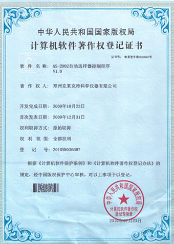 銆愭湰緗戣銆?013騫?鏈?1鏃ラ儜宸炲厠鑾卞厠鐗圭瀛︿華鍣ㄦ湁闄愬叕鍙告帴鍒頒腑鍥界増鏉冧繚鎶や腑蹇冧笅鍙戠殑鍏充簬鎴戝徃浜у搧鈥樺厠鑾卞厠鐗硅嚜鍔ㄨ繘鏍峰櫒PC鏈烘帶鍒剁▼搴忊欑殑璁$畻鏈鴻蔣浠惰憲浣滄潈鐧昏璇佷功銆傛璇佷功鐨勯鍙戯紝鏍囩ず鐫鎴戝叕鍙稿畬鍏ㄤ韓鏈変簡 鈥滃厠鑾卞厠鐗硅嚜鍔ㄨ繘鏍峰櫒PC鏈烘帶鍒剁▼搴忊?/span>鐨勮蔣浠惰憲浣滄潈銆?